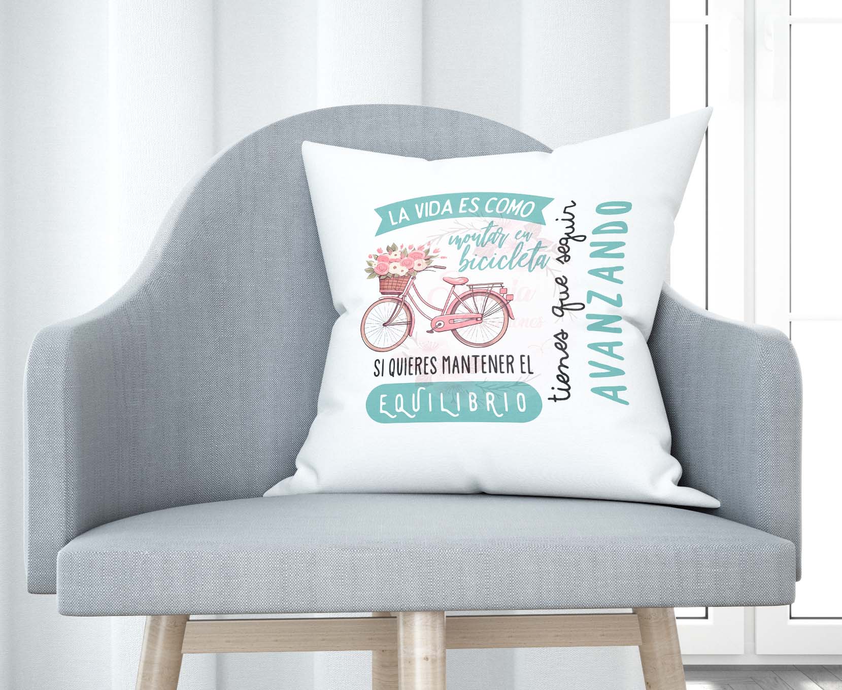 Cojín tacto algodón – La vida es como montar en bicicleta…