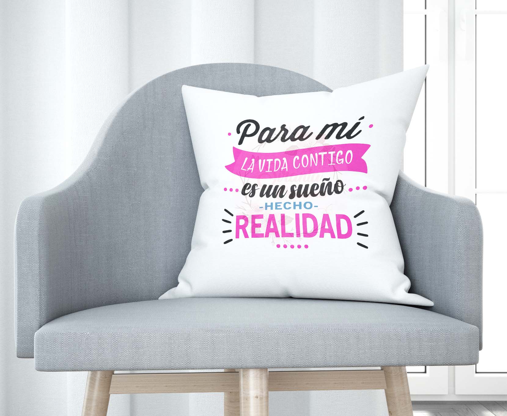 Cojín tacto algodón – Para mí la vida contigo es un sueño hecho realidad