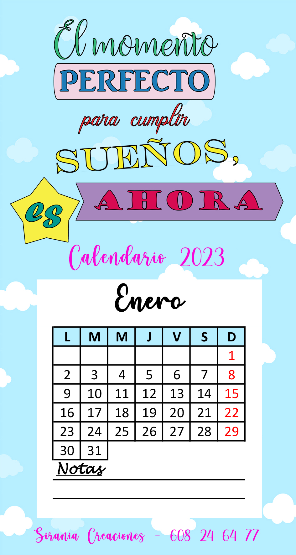 Minicalendario Si la vida es un sueño… Contactar por WhatsApp
