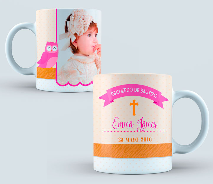 Taza Bautizo color azul y naranja Contactar por WhatsApp