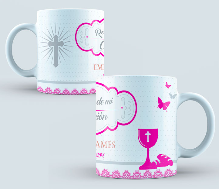 Taza Comunión color aguamarina y blanco Contactar por WhatsApp