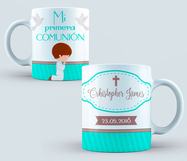 Taza Comunión color verde, marrón y blanco